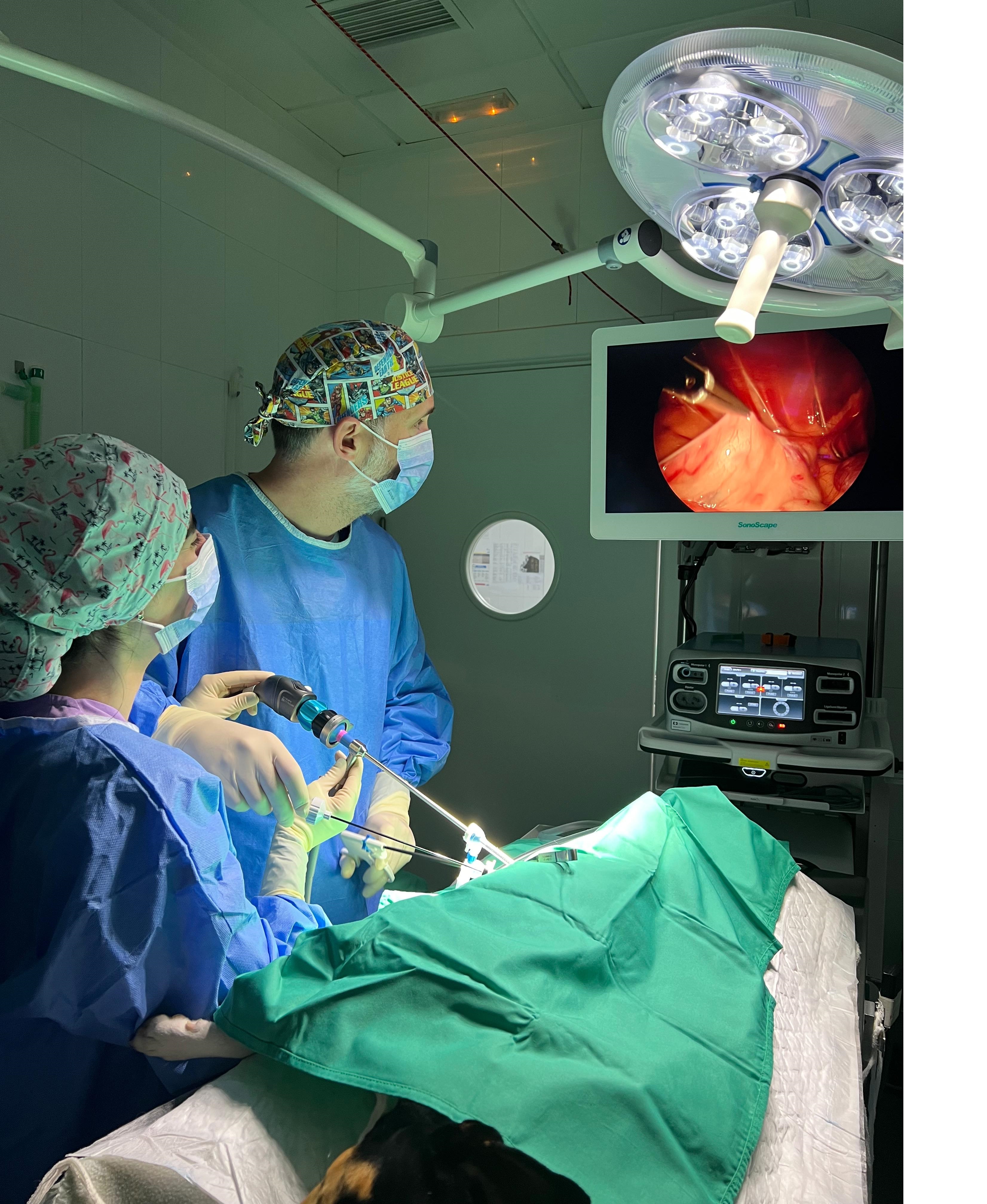 Somos la primera clínica en la localidad en disponer de laparoscopia para la realización de cirugías de mínima invasión como las “esterilizaciones de hembras”, extracción de vesícula biliar , recogida de muestras hepaticas ,renales, de páncreas y cualquier órgano alojado en tórax y abdomen.
